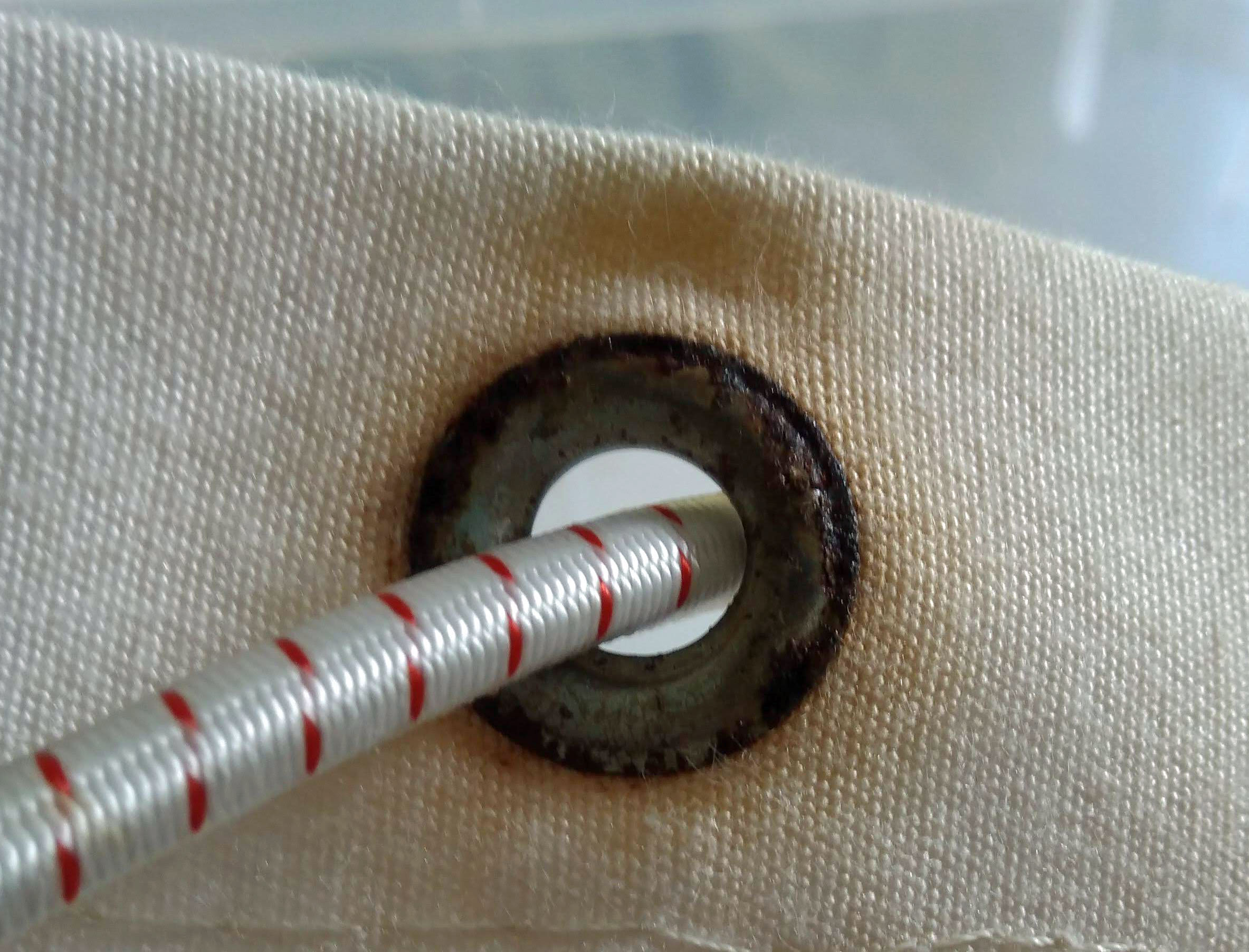 Olisi pitänyt tajuta varmistaa, että läpivientirenkaat olivat ihan oikeasti messinkiä, eivätkä messinkipinnoitettuja. Peite toimi seuraavana kesänä muuten oikein hyvin. Täytyy vain vaihtaa nämä lelurenkaat kunnollisiin ennen seuraavan sesongin alkua.