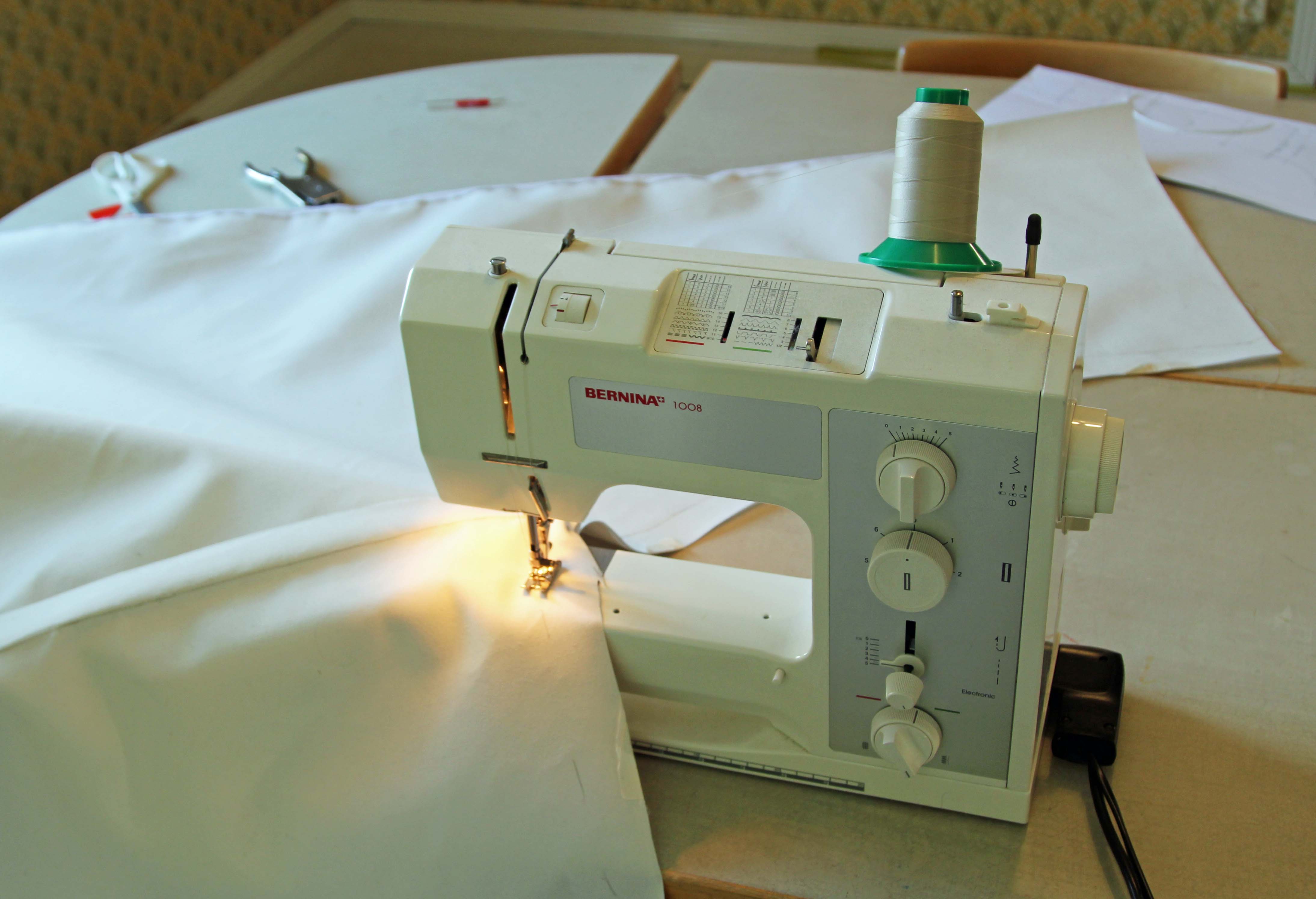 1) Kankaan ompelemisen haastavinta oli estää raskaan kankaan valuminen ja siirtyminen ompelukoneen paininjalan alta, etenkin silloin, kun ommeltavat kappaleet alkoivat olla isokokoisia. Sitä pystyy estämään pitämällä kangasta mahdollisimman samassa tasossa ja isolla pöydällä, ommellessa vasemmalla kädellä vetoa poistamassa ja varmistamalla, että joka kerta pysähdyttäessä neula on painuneena kankaan läpi. Purjemaakareillahan on usein valtavan kokoinen pöytä työtä helpottamassa. Ompelukoneeni on ihan kotikone, joskin melko robusti, mekaaninen Bernina 1008, ja siksi artisaanien ja ehkä koulujen suosima. En usko, että hyvälaatuisella kotikoneella ja sopivan paksuisella neulalla on ongelmaa.
