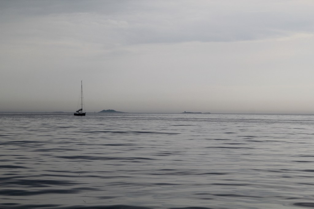 Emme olleet ainoita mastonkuljettajia. Myös vastaantulevien purjeveneiden purjeet pysyivät paketeissaan. Koska tuuli olisi ollut joka tapauksessa vastainen, oli vain hyvä, että oli tyyntä, sillä se säästi polttoainetta matkavauhdin kärsimättä. Koko päivä koneajossa on puuduttavan tylsä. Sipoon selällä päästiin onneksi purjehtimaankin.