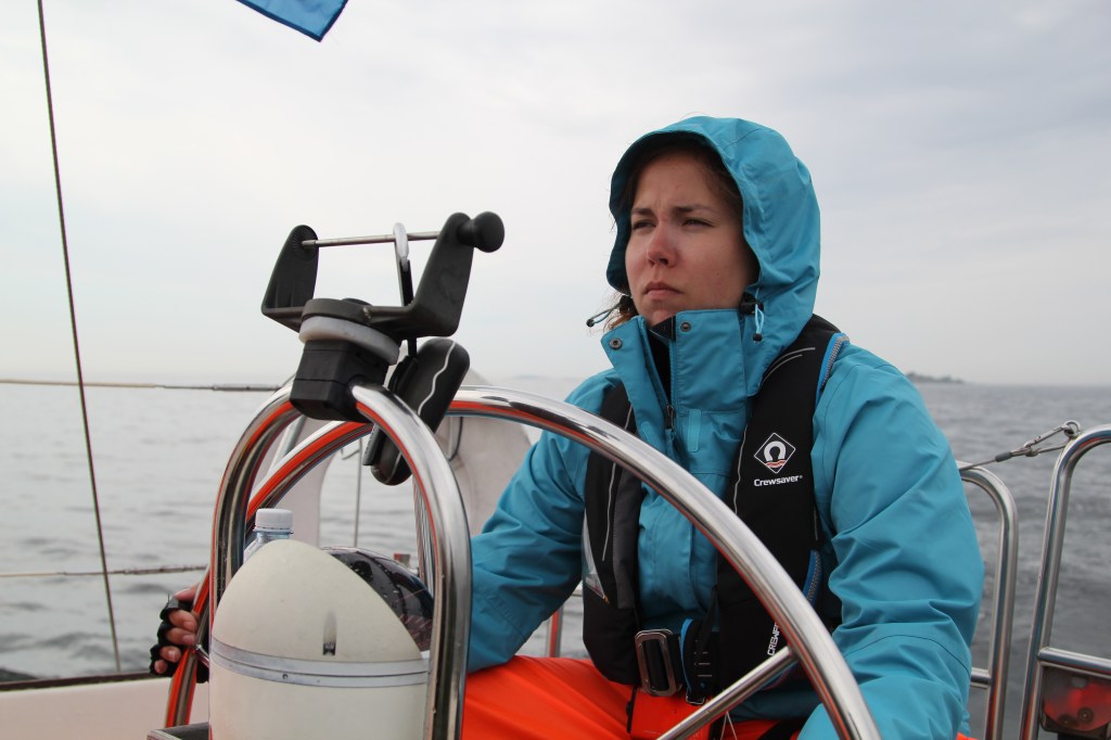 Sagan vuoro ruorissa Helsingin edustalla. Maailmanlopun kokeneen, vanhan karttaplotterin tilalla roikkuu pieni retki-GPS, minkä kartoista löytyy talletettuina hyviä sienipaikkoja. Tällä kertaa se toimi vain paikallistamisapuna. Kyseinen retkinavigaattori toimi aikanaan varsin hyvänä apuna Kroatian saaristossa muutamia vuosia aikaisemmin, vaikka siihen oli ladattuna vain koko Euroopan laajuinen yleiskartta.