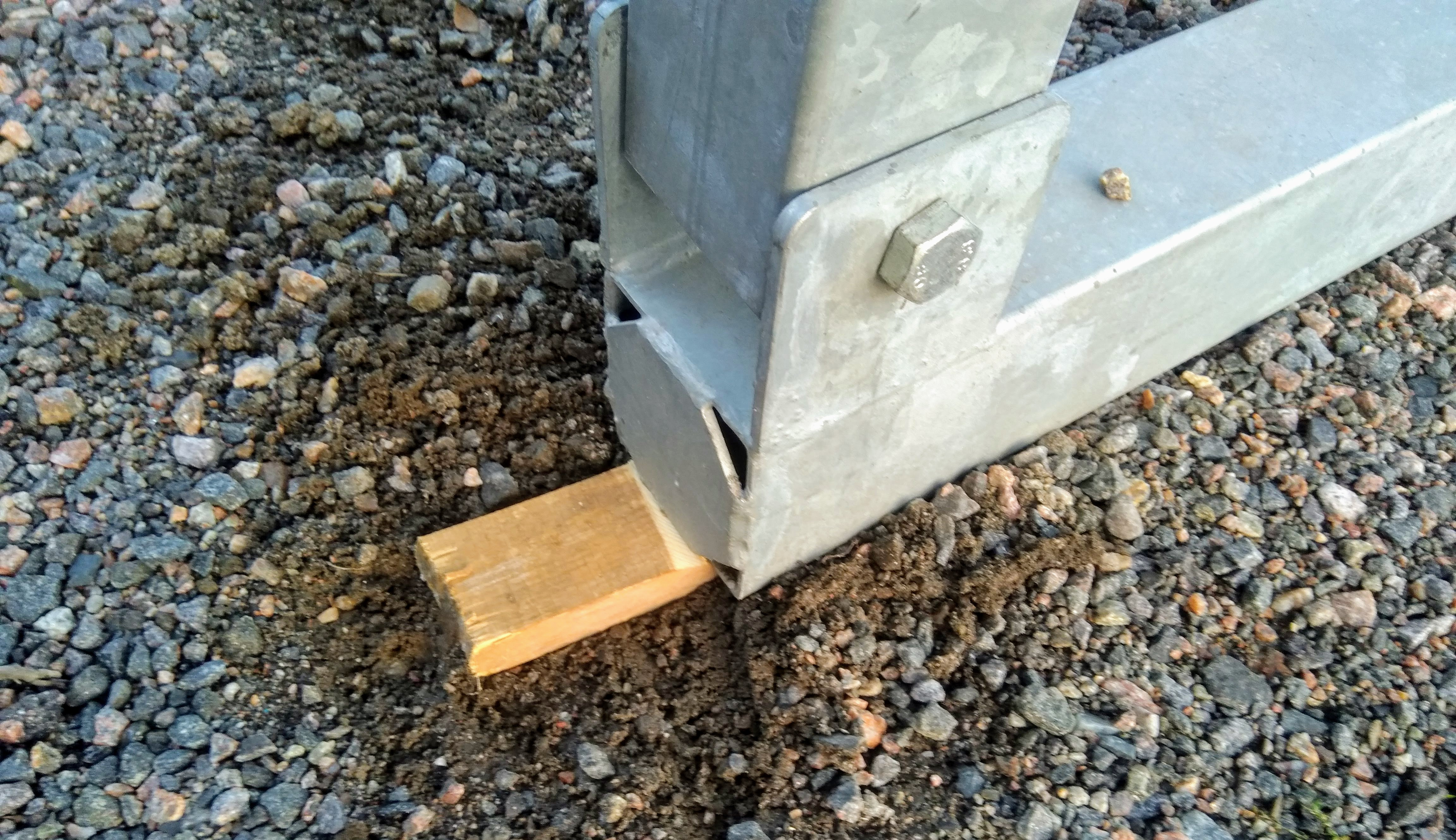 Having finally the chance to visit the boat I noticed it was clearly rocking in the heavy wind, and surprisingly easily when pushed. The boat stand is H-formed, with the keel resting on the horizontal part of the letter H. The side poles were slightly higher than the central part allowing the boat rock to both sides. Each time the boat would press the ground making the movement incrementally larger. I found it very inconvenient, and decided to stabilise the boat with wedges.