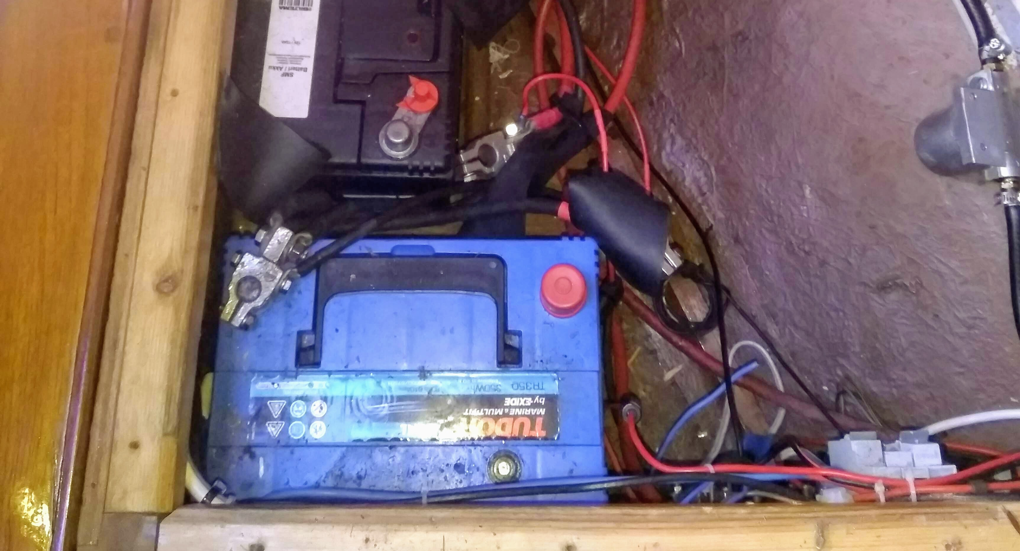 Testasin akut ja ne vaikuttivat hyväkuntoisilta, joskin testeri mittaa akun kuntoa auton moottorin käynnistystä silmälläpitäen. Toisaalta testi kertoo, ovatko akut ylipäätään toimintakunnossa vai eivät. Veneessä on kolme akkua, yksi moottorille ja kaksi hupia varten. Ne ovat entisen omistajan hankkimia. Auton akku ei ole hupiakkuna paras mahdollinen, mutta ne ovat halpoja ja niitä löytyy helposti. Täytyy harkita muita vaihtoehtoja, kun nämä akut vääjäämättä vanhenevat.