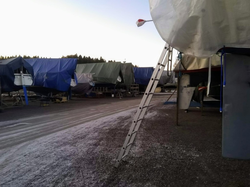 Saatuani seuraavana päivänä tehtyä kiilat, kävi ilmi, että myrskyn vuoksi oli vesi noussut 65 cm, joten tie talvisäilytyspaikalle ja itse venekenttä olivat veden vallassa. Sinne ei päässyt. Elin toivossa, ettei vesi jäätyisi, sillä sen jälkeen kiilojen lyönti olisi kutakuinkin mahdotonta.