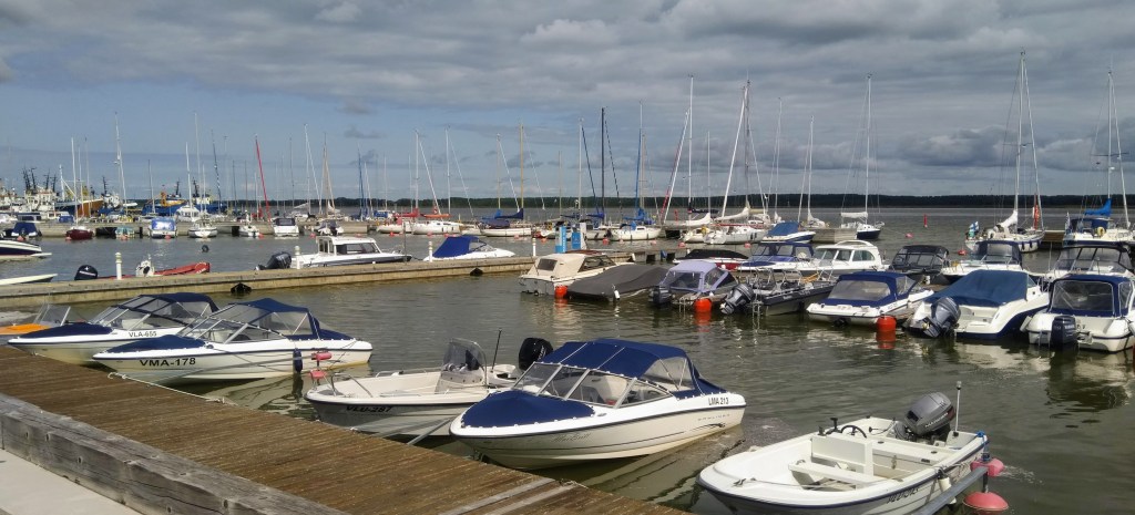 We arrived at Haapsalu Westmeri marina at 16.07 and went to the fancy looking marina bar to have a beer or something. There seems to be an Estonian habit (?) to bring all the customers first a drinks menu without asking directly what the customers might want. From my, a random customer’s point of view, it is a waste of cash flow: I could immediately tell I need a beer and might have another one, if I would not need to wait for my first one for so long.